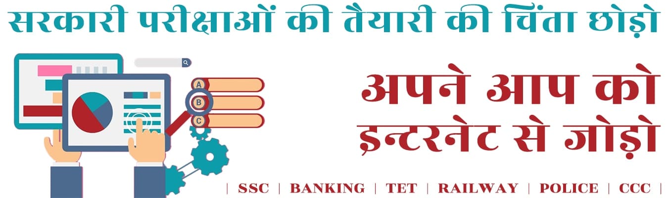 प्रतिवर्ष, अनेकों सरकारी परीक्षाएँ विभिन्न सरकारी पदों के लिए संचालित होती रहती हैं | हम ऑनलाइन द्वारा ट्यूटोरियल, प्रैक्टिस प्रश्नपत्र, और मॉक टेस्ट कराते हैं जिनकी रिपोर्ट्स विवरण सहित हिन्दी और अंग्रेजी में उपलब्ध करायी जाती है | इस प्रकार परीक्षार्थी अपने कंप्यूटर और मोबाइल फ़ोन द्वारा अपनी तैयारी का आकलन करके उसे यथा संभव सुधार सकते हैं | हमारी वेबसाईट में बिभिन्न प्रकार की लगभग 60 सरकारी परीक्षाएँ सूचित हैं जिनमें SSC, TET, BANKING, RAILWAYS, POLICE, DEFENCE आदि शामिल हैं | हम ऑनलाइन द्वारा ट्यूटोरियल, प्रैक्टिस प्रश्नपत्र, और मॉक टेस्ट कराते हैं जिनकी रिपोर्ट्स, विवरण सहित हिन्दी और अंग्रेजी में उपलब्ध करायी जाती हैं | इस प्रकार परीक्षार्थी अपने कंप्यूटर और मोबाइल फ़ोन द्वारा अपनी तैयारी का आकलन करके उसे यथा संभव सुधार सकते हैं |